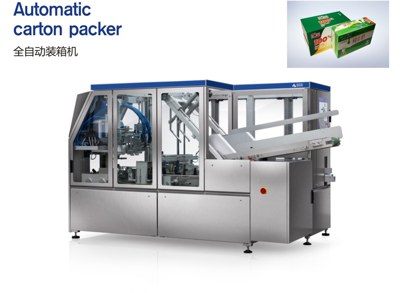 概述:灌裝后的成品包通過高速、連續(xù)、穩(wěn)定的自動整列、紙箱成型、折邊、封箱等工序完成自動裝箱
