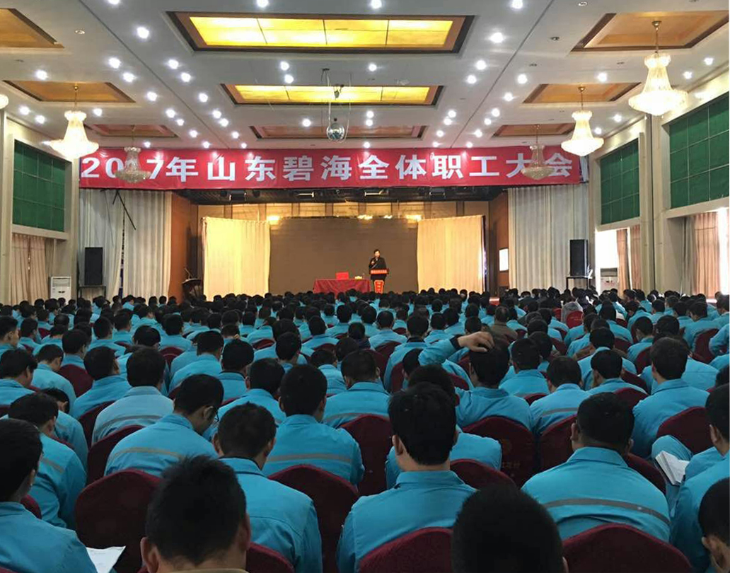 2017年2月6日上午8:30時,在綠地公館召開“2017年山東碧海全體職工大會”,這是公司全體職工,“統(tǒng)一思想、統(tǒng)一行為、統(tǒng)一結果”的大會,是充滿激情,斗志昂揚,團結奮進的大會。